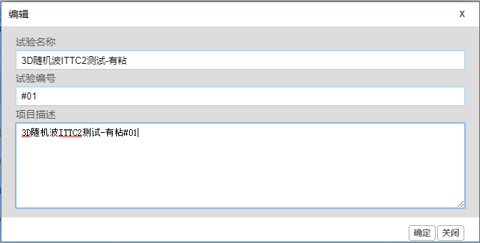 当一个新的虚拟试验创建口,用户需要对其参数进行适当的录入或修改,为确保结果的准确,请确认所录入的参数符合实际情况。一个虚拟试验可大致分为文件型参数、单数值型参数、表格型参数几种类型,下面以“样例-中小尺度-三维随机波”为例,介绍一下各种类型参数的录入方式。
