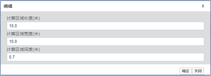 在“计算参数”标签中,点击“计算区域”小标签下方的“修改”按钮,可进入如下图所示页面,可以进行与计算区域相关参数的设置。按照所提示的信息输入正确的计算区域参数。参数为“默认值”,如有修改必要,参数都需要用户手动输入。