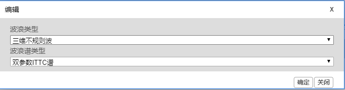 在“波浪参数”标签中,点击“波浪类型”小标签下方的“修改”按钮,可进入如下图所示页面。其中“波浪类型”和“波浪谱类型”为下拉菜单,不需要用户输入。
