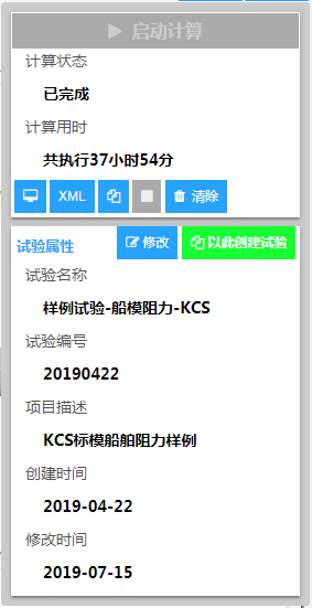 开始试验船模阻力虚拟试验是基于粘流理论进行开发的虚拟试验,试验针对三大主力船型集成了计算体网格自动生成和参数设置等专家知识库,操作简单易用,能满足船舶静水阻力的性能评估要求。