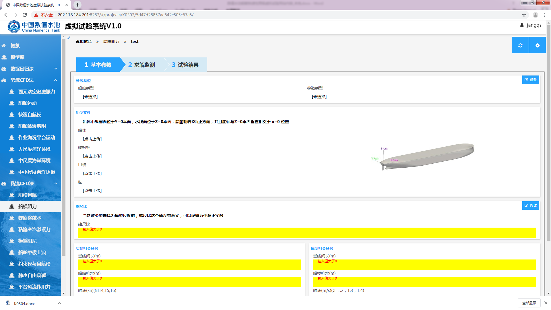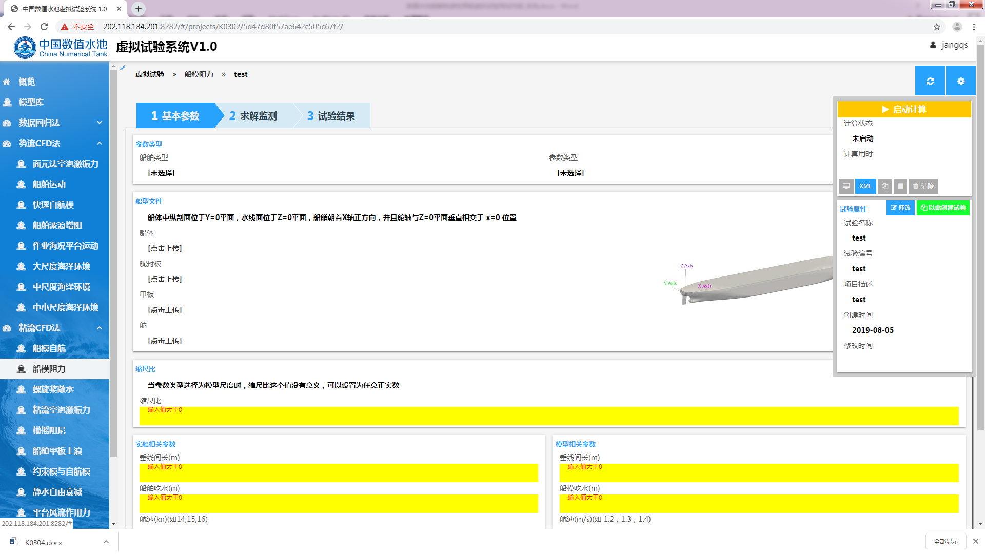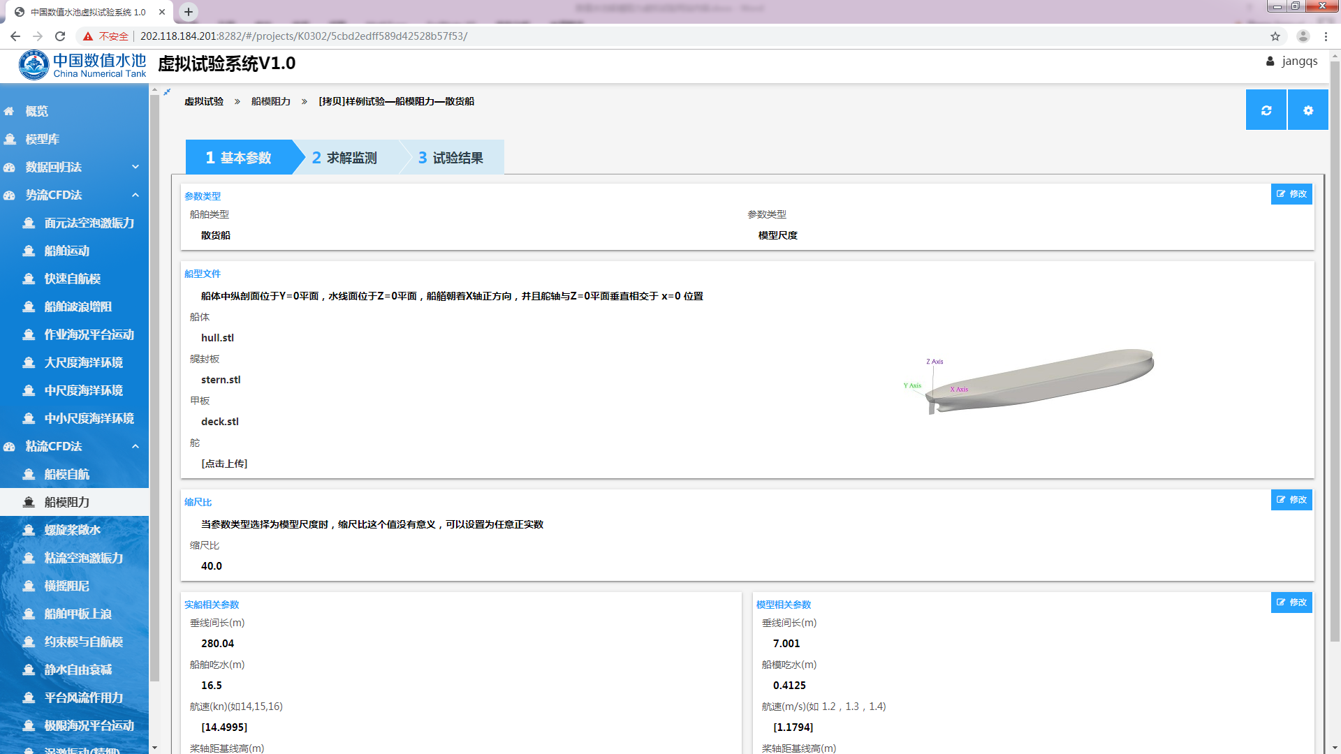 图3.1 船模阻力虚拟试验网页界面