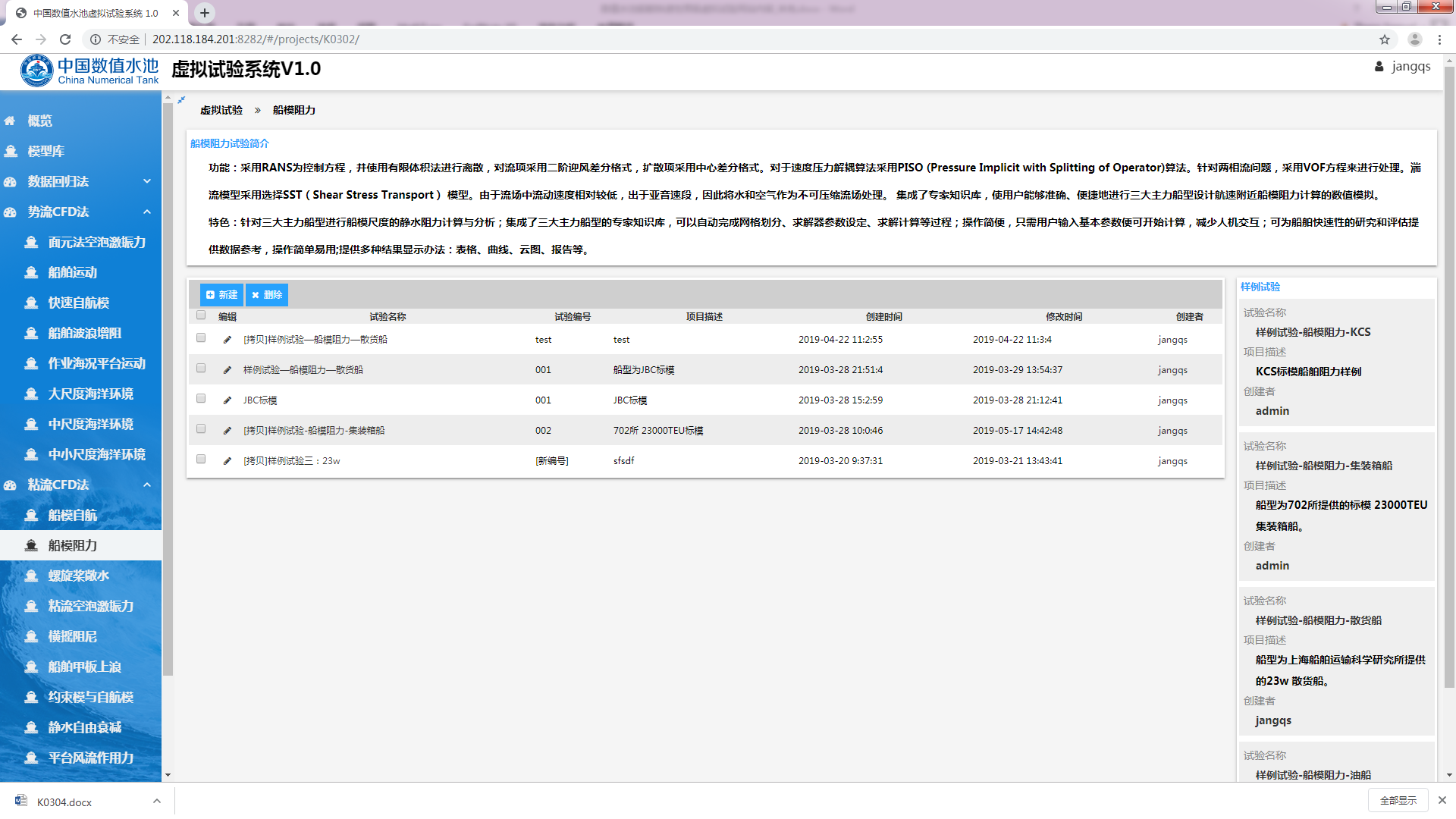 进入船模阻力虚拟试验后,点击右侧任一一个样例试验,如图3.1所示。