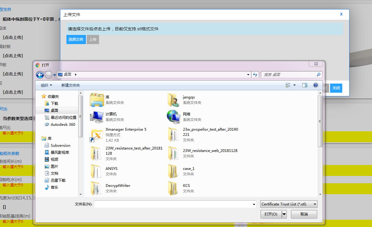 点击页面中的“点击上传”按钮,即弹出如图3.8所示的页面,用户需在此上传船体相关几何部件。其他船体几何部件,用户可采用类似的操作进行上传。