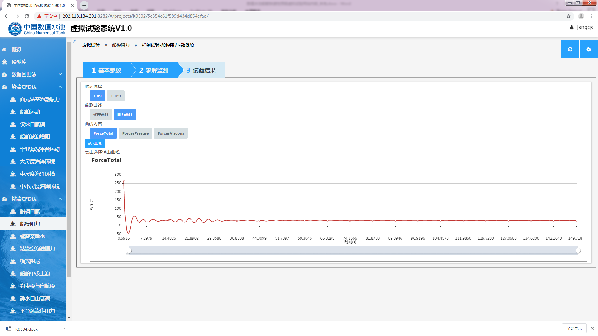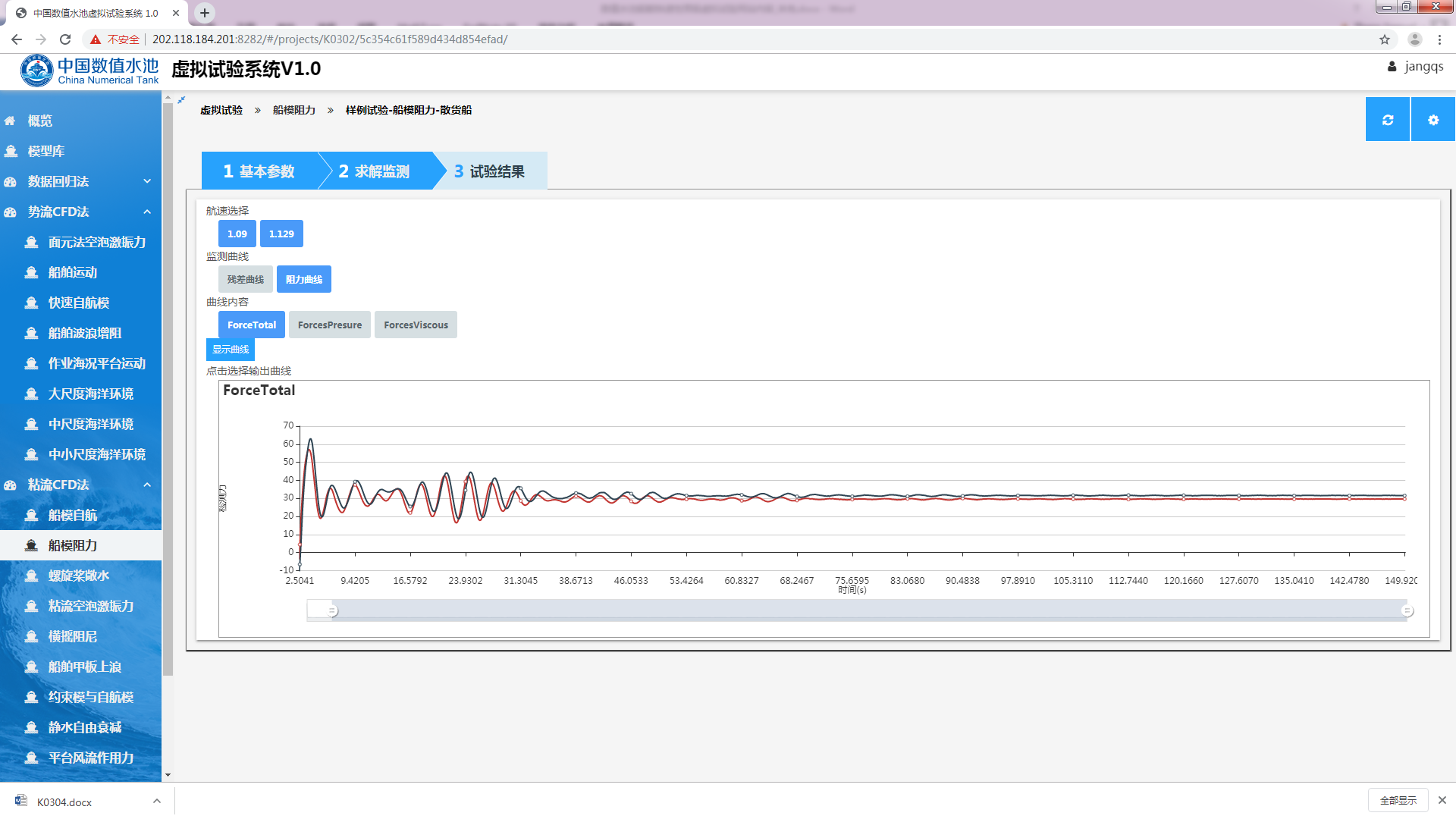 开始试验样例试验-某散货船船模阻力虚拟试验