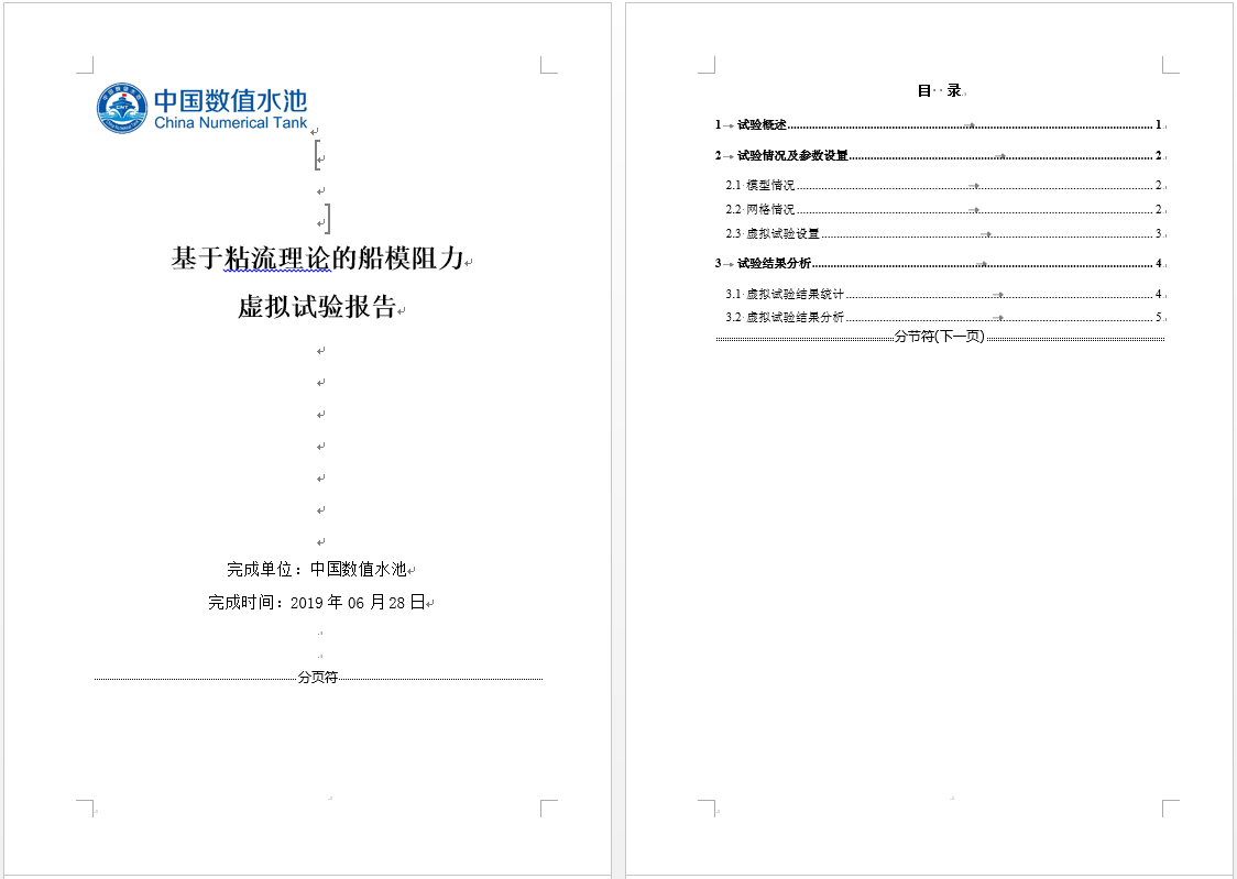 Ship Resistance Virtual Test based on Viscous Flow Theory试验介绍