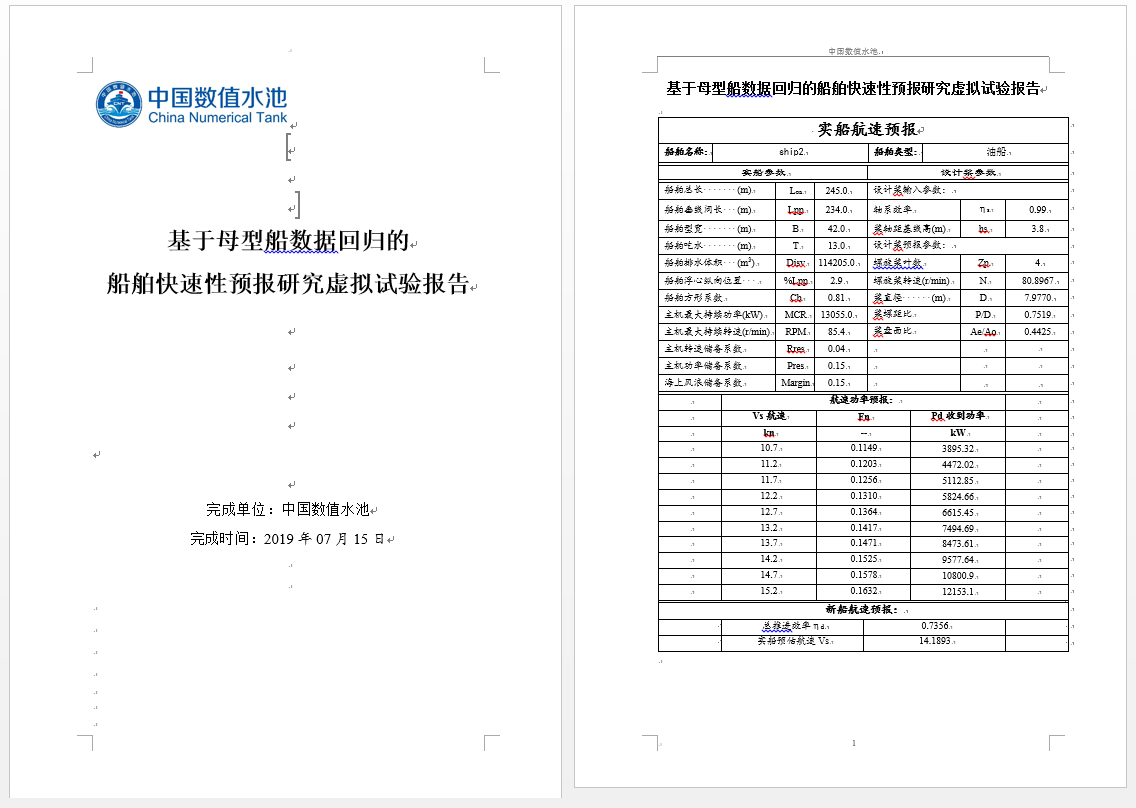 Virtual Test of Ship Speed and Resistance Prediction based on Parent Ship Database Regression Analysis试验介绍
