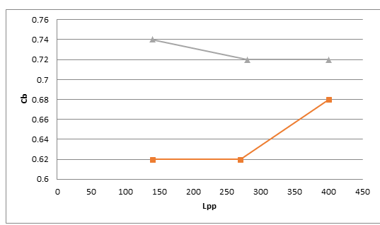 垂线间长与方型系数的范围