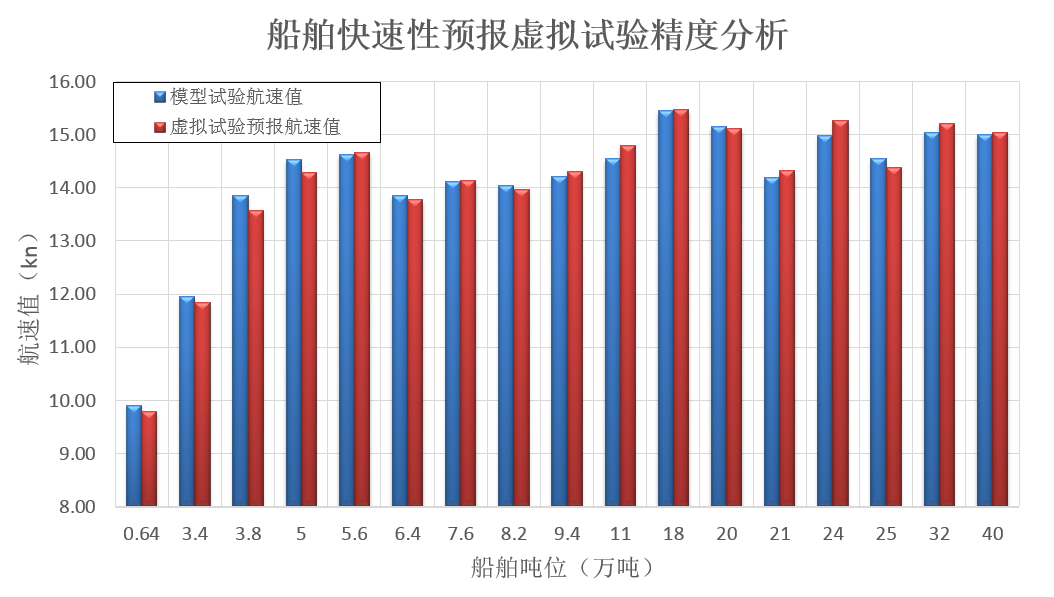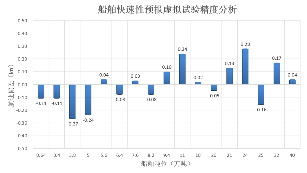 该虚拟试验系统精度稳定可靠,船舶航速预报精度为0.3kn以内,达到了船型设计初期船舶航速快速估算的精度要求。