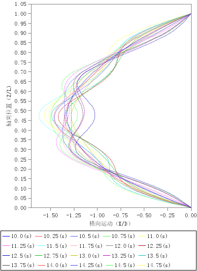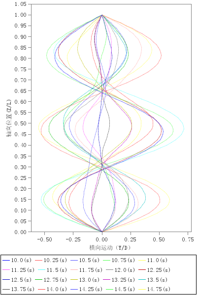 振动包络线、横流向振动均方根曲线、顺流向振动包络线、顺流向振