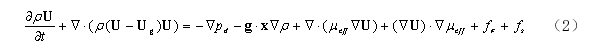 本控制方程求解非定常不可压粘性流体,求解器中采用的控制方程为不可压的两相RANS(Reynolds-Averaged Navier-Stokes)方程: