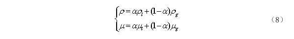 基于体积分数α,密度ρ和动力粘度µ分别定义为: