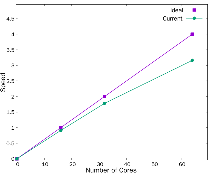 (1)本产品使用MPI库进行并行通讯,重叠网格DCI和CFD求解实现完全并行化,本产品并行效率较高,100万网格,64核加速比0.8左右。