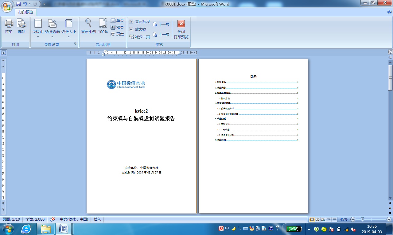 约束模与自航模虚拟试验-育鹏轮