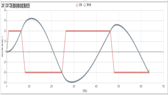 20°/20°Z形首向角和舵角时历