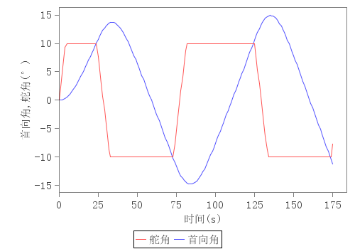 10°/10°Z形首向角和舵角时历