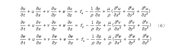 小尺度模型采用三维不可压缩粘性流体NS方程作为控制方程,连续性方程和动量方程,如下