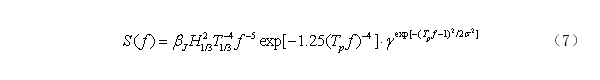 式中,H1/3为有效波高,Tp为谱峰值周期,fp为谱峰值频率,谱峰值参数γ取平均值3.3。