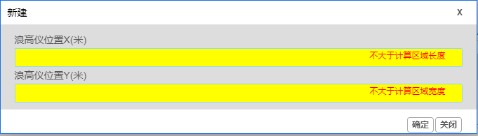 在“输出参数”标签中,点击“浪高仪信息”小标签下方的“新建”按钮,可进入如下图所示页面,可以进行与浪高仪信息相关参数的设置。按照所提示的信息输入正确的浪高仪信息参数。参数需要用户手动输入。