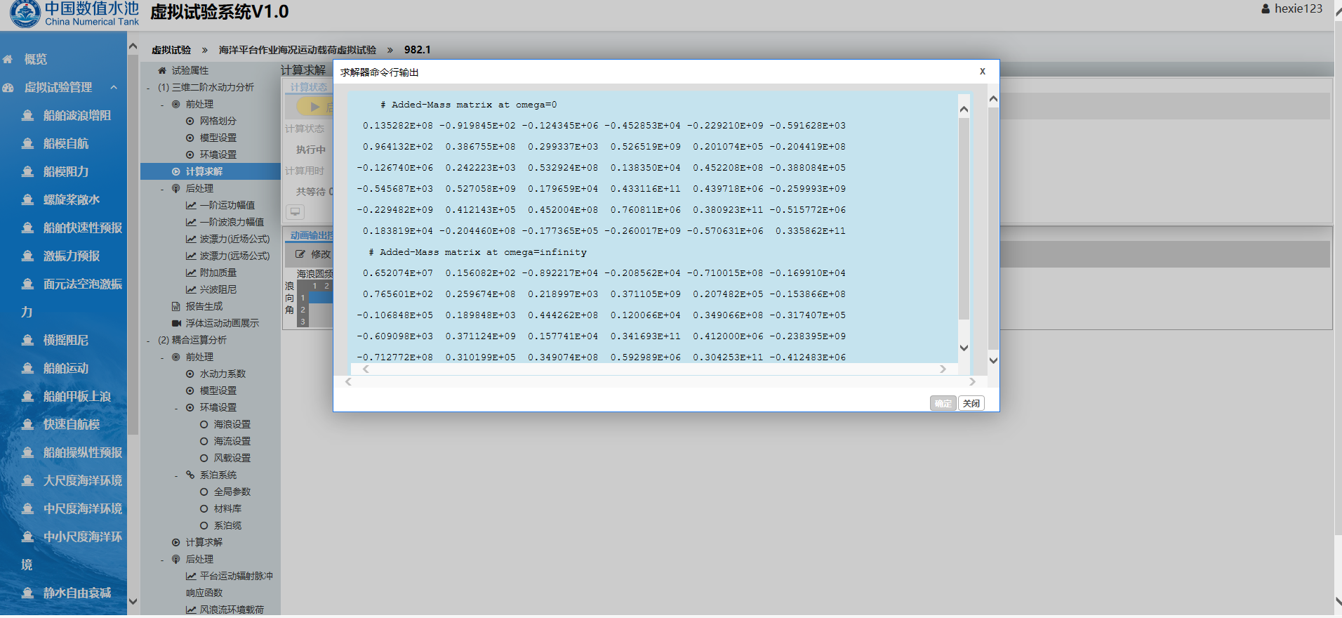 本次测试环境:64位操作系统 CPU2.8GHz 内存8GB 测试的网址:http://202.118.184.201:8282/#/projects/K0803/ 针对982平台18个规则波下的水动力计算,网格数量为5344,采用4核进行计算,耗时半小时左右,耦合部分计算时长受网络集群核数影响,8线程模拟物理模型试验3小时,实际运算时间为半小时左右。