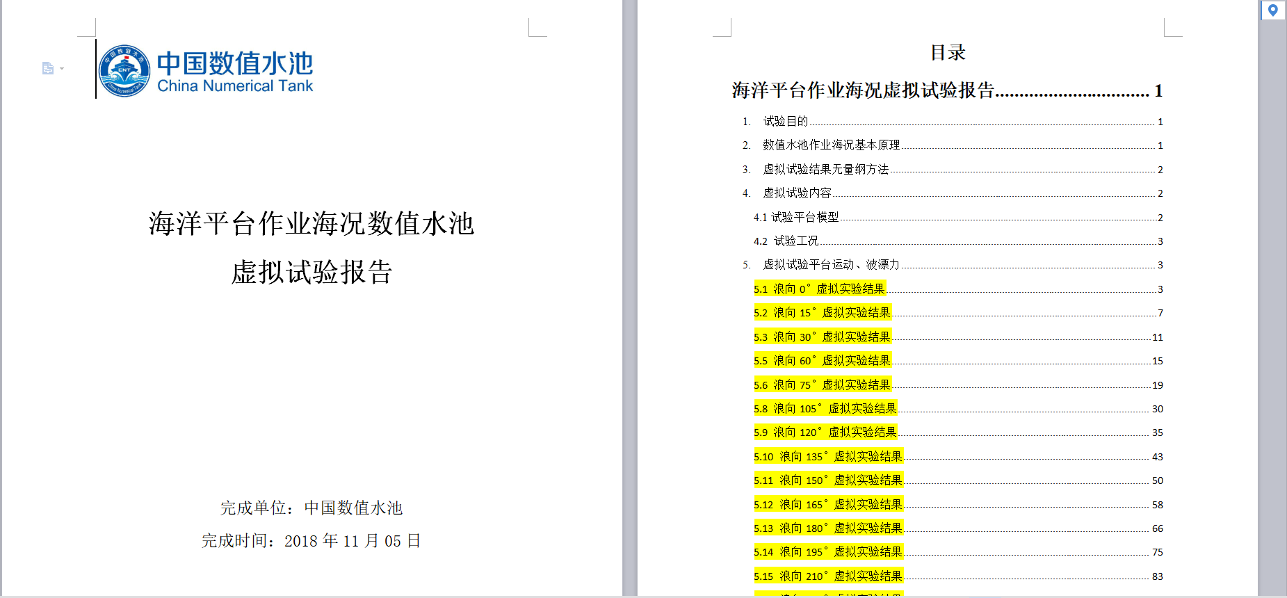 Offshore Platform Motions in Operation Condition Virtual Test试验介绍
