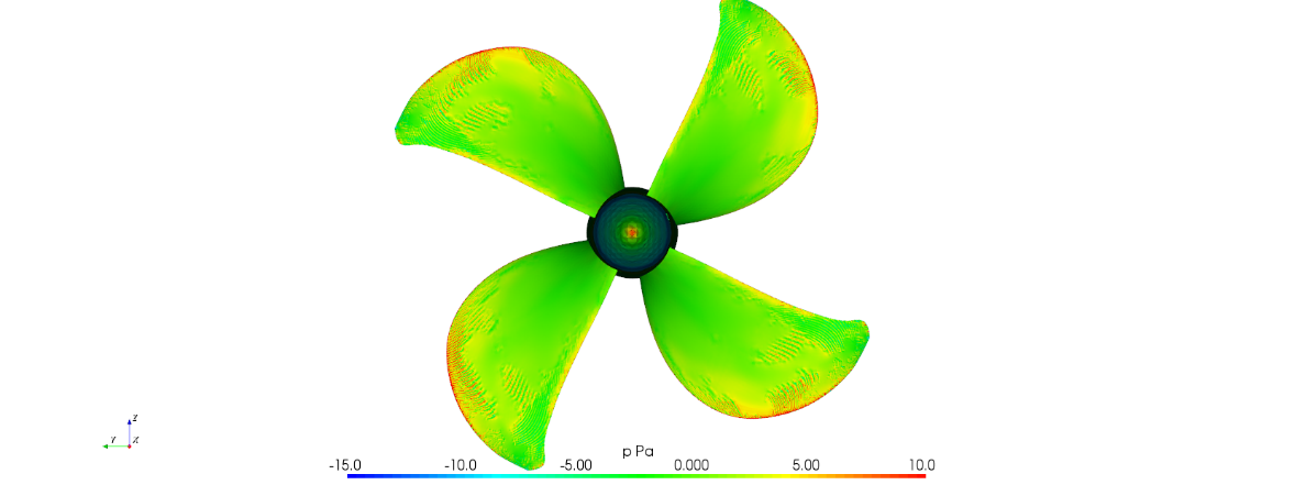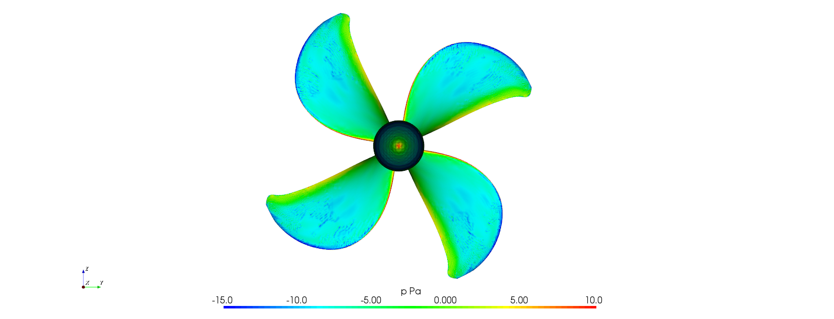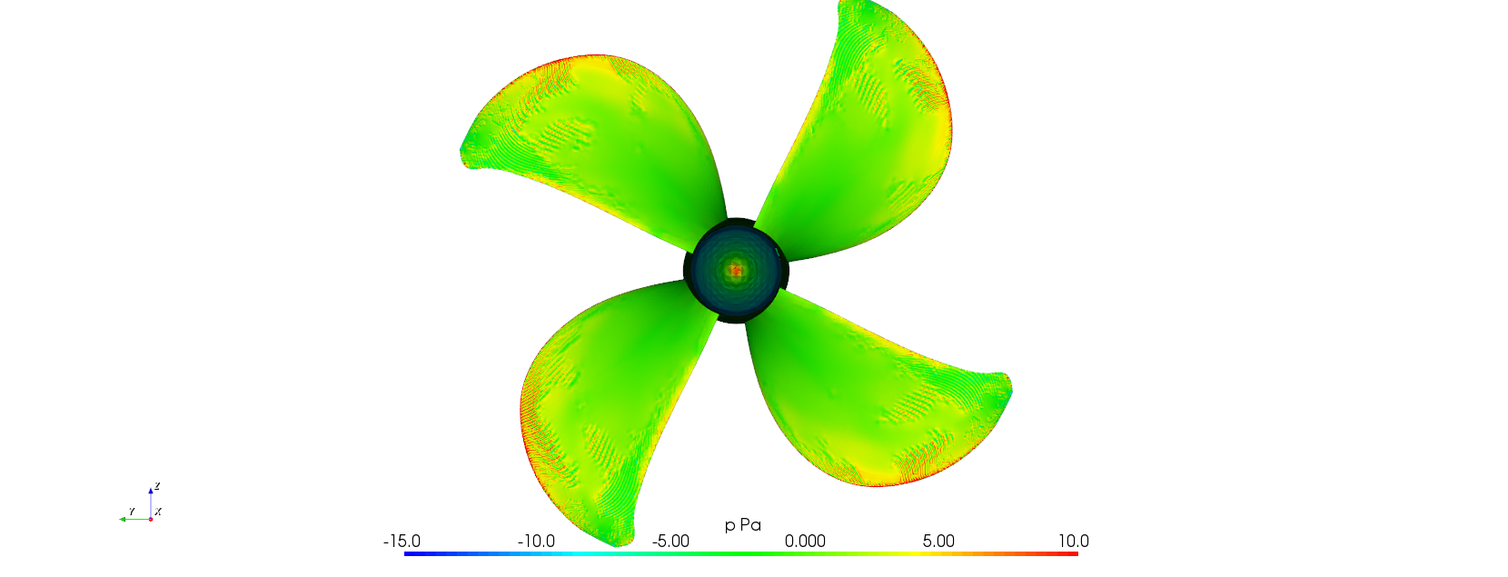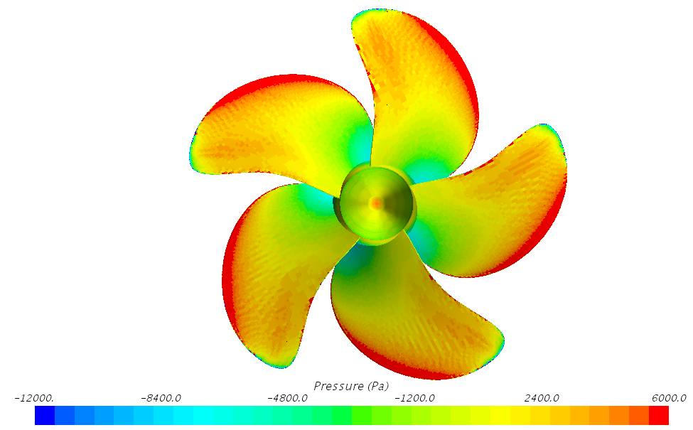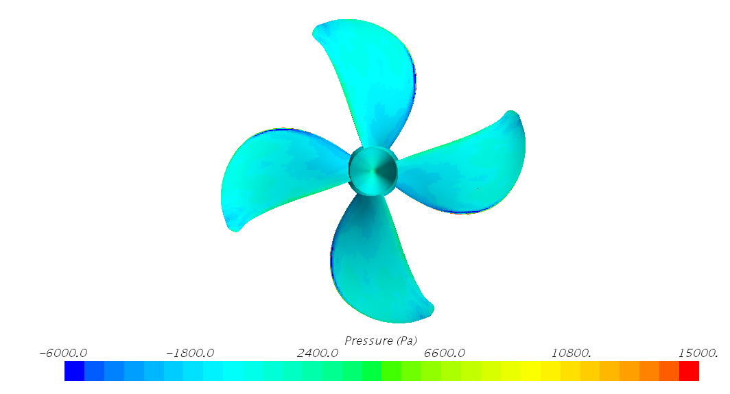 图3.15 螺旋桨表面(压力面/吸力面)压力分布云图