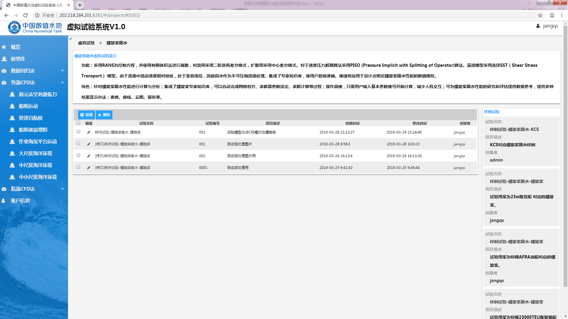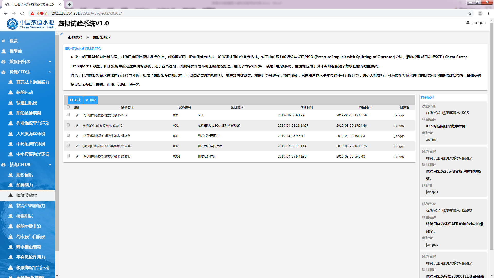 进入螺旋桨敞水虚拟试验后,点击右侧任一一个样例试验,如图3.1所示。