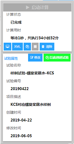 处,页面会自动弹出当前虚拟试验的试验属性,点击其中的橙色“启动计算”按钮即可开始计算。