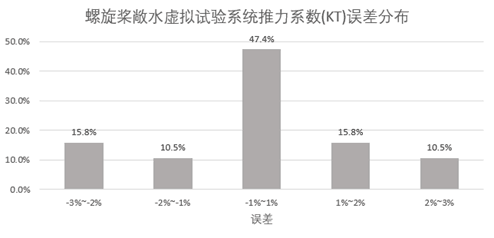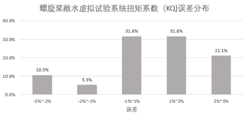 本虚拟试验螺旋桨敞水性能分析稳定可靠,数值精度获得了物模试验验证,对螺旋桨工作段附近的敞水性能计算结果平均值误差在3%以内。