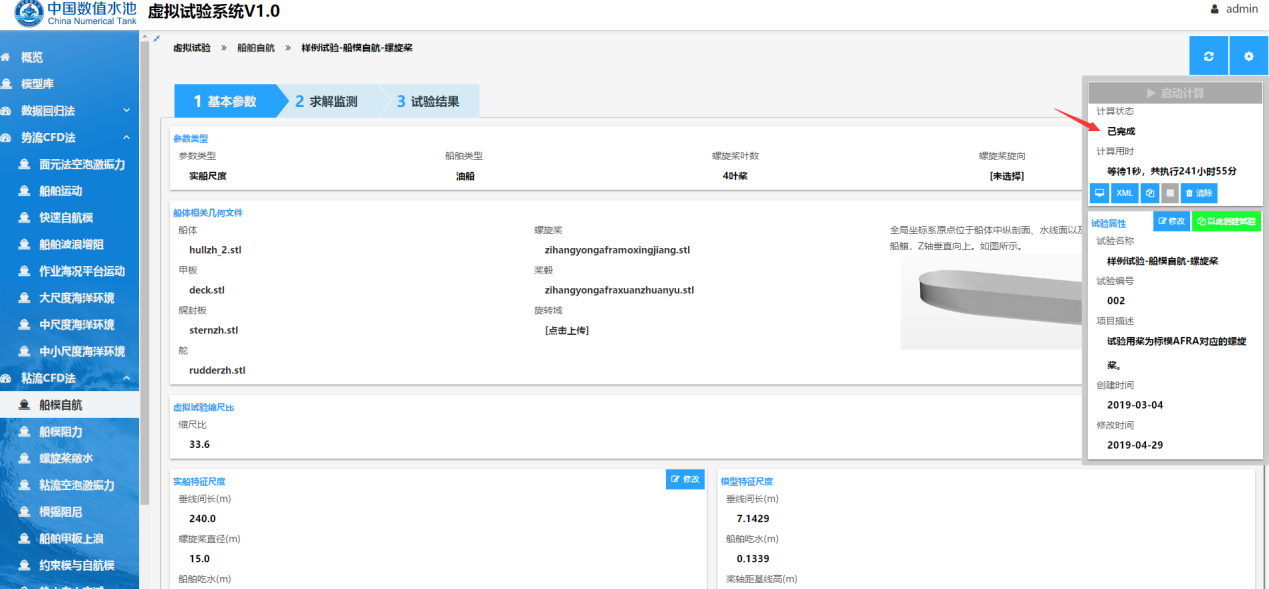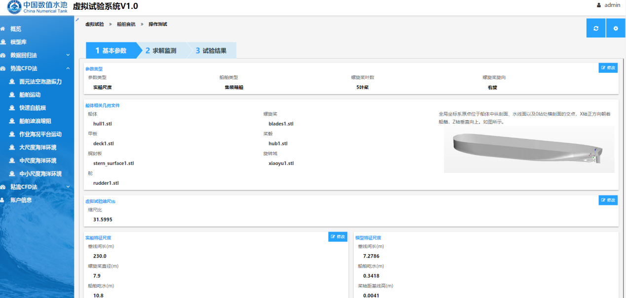 船模自航虚拟试验由数值模拟模块、专家智慧模块、数据自动后处理模块构成,具有准确、便捷的特点,能够帮助用户方便的完成船模自航虚拟试验。
