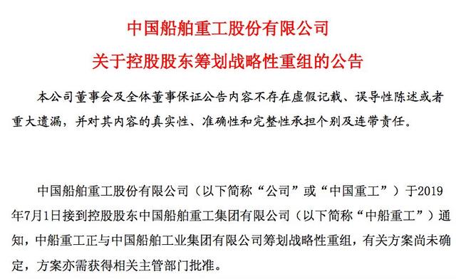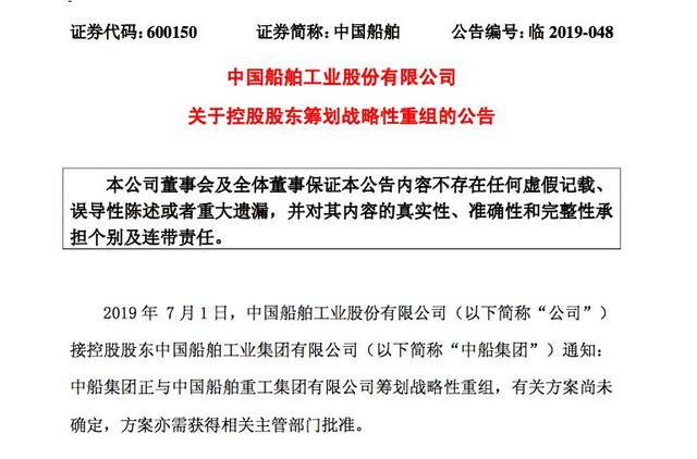 7月1日这一天,两大造船集团群推重组公告