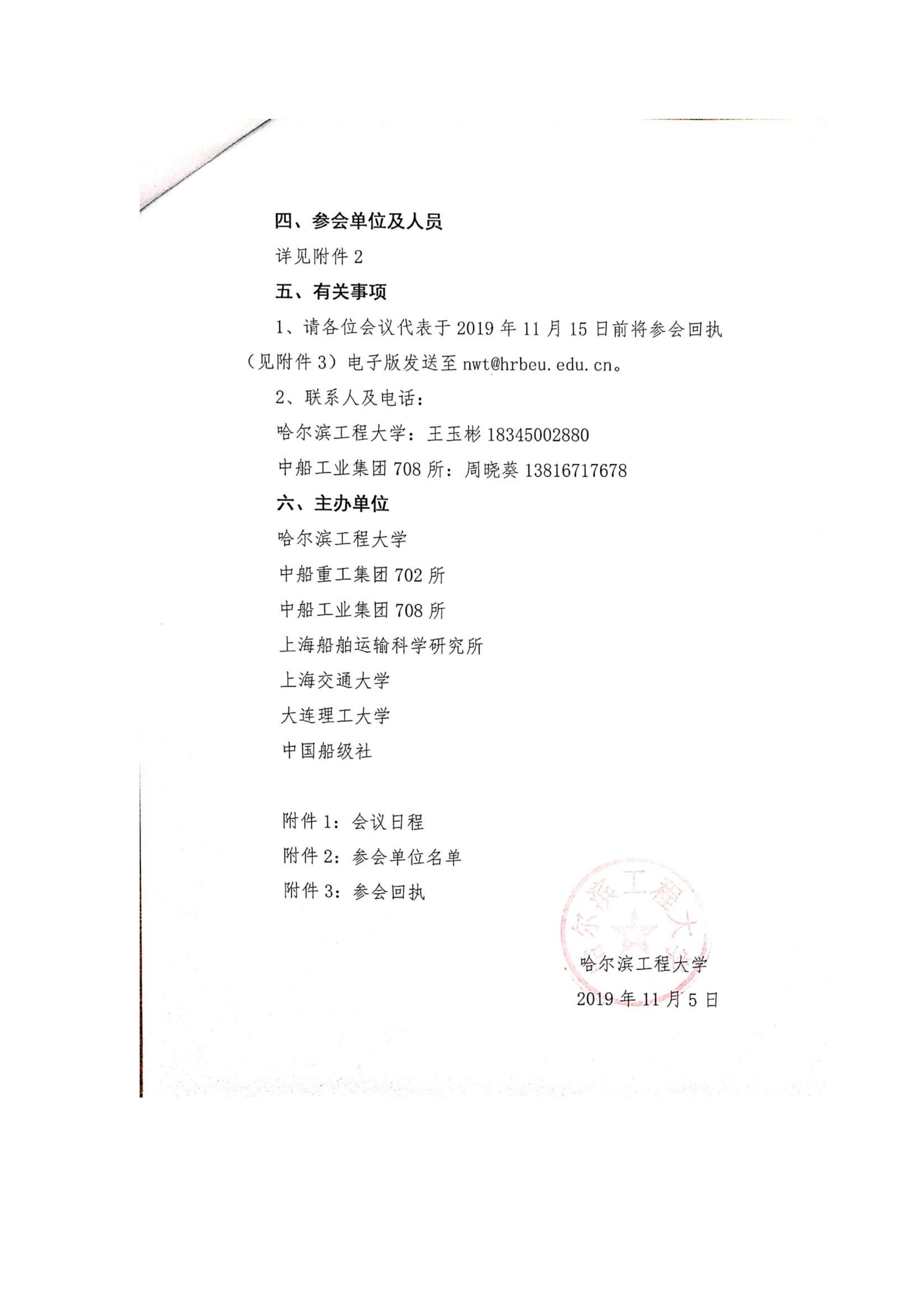 1.请各位会议代表于2019年11月15日前将参会回执(见附件3)电子版发送至nwt@hrbeu.edu.cn 。