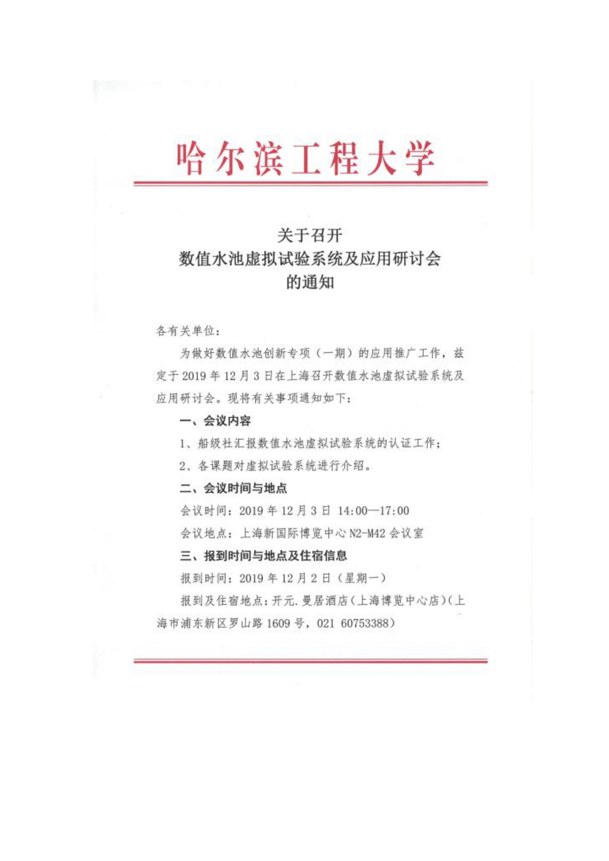 为做好数值水池创新专项(一期)的应用推广工作,兹定于2019年12月3日在上海召开数值水池虚拟试验系统及应用研讨会。现将有关事项通知如下: